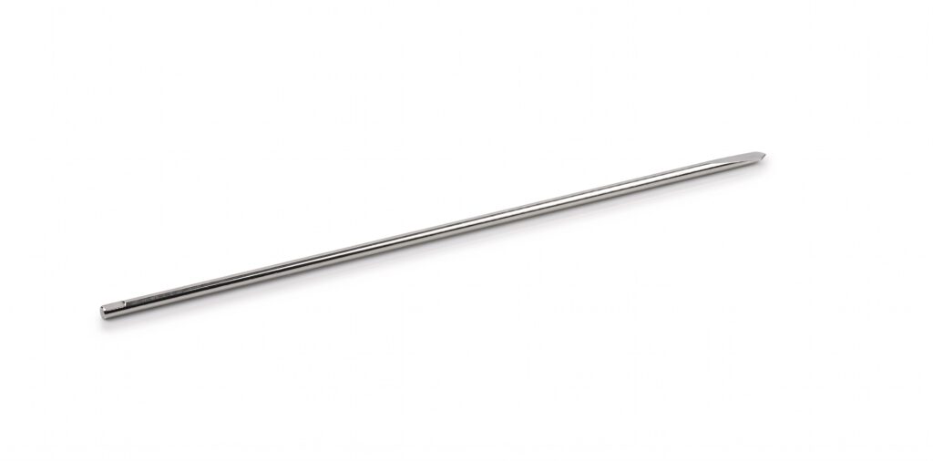 Descrizione: Trokar in acciaio chirurgico per accesso controllato a cavità ossee o tessuti, utilizzabile come guida per strumenti cannulati.